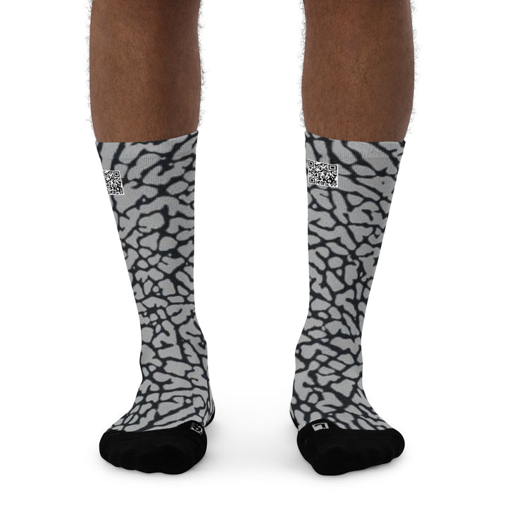 These custom-made crew socks are a great choice for both casual and sporty looks. Spice up your outfit with these nifty crew-length socks!